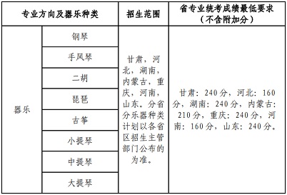 專業(yè)考試器樂種類須與我校招生專業(yè)對應(yīng)的器樂種類完全匹配,否則不予錄取。無影響器樂演奏的生理缺陷。考生自身身心健康狀況不影響專業(yè)表演、演奏和學(xué)習(xí),符合《普通高等學(xué)校招生體檢工作指導(dǎo)意見》及有關(guān)補(bǔ)充規(guī)定要求。