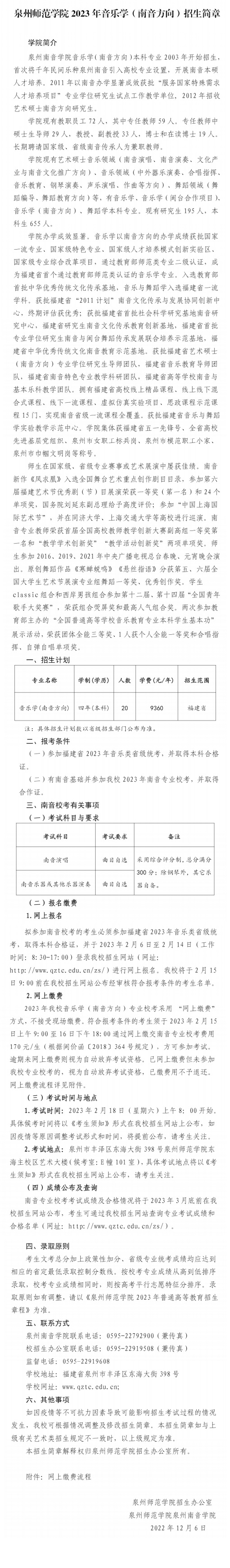 泉州師范學院2023年音樂學(南音方向)招生簡章