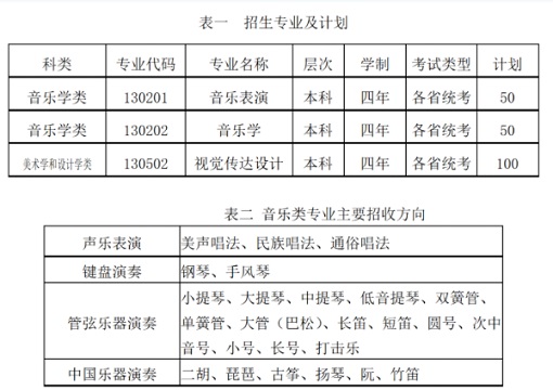 音樂學、音樂表演專業擬在河北、山西、內蒙古、黑龍江、浙江、福建、江西、河南、山東、湖北、湖南、廣東、重慶、四川、云南、陜西、安徽進行招生。