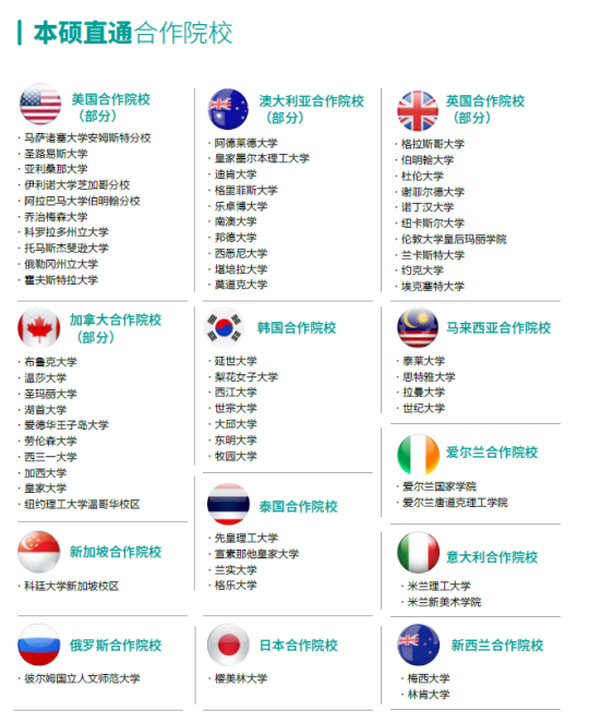 本碩直通合作院校(部分)