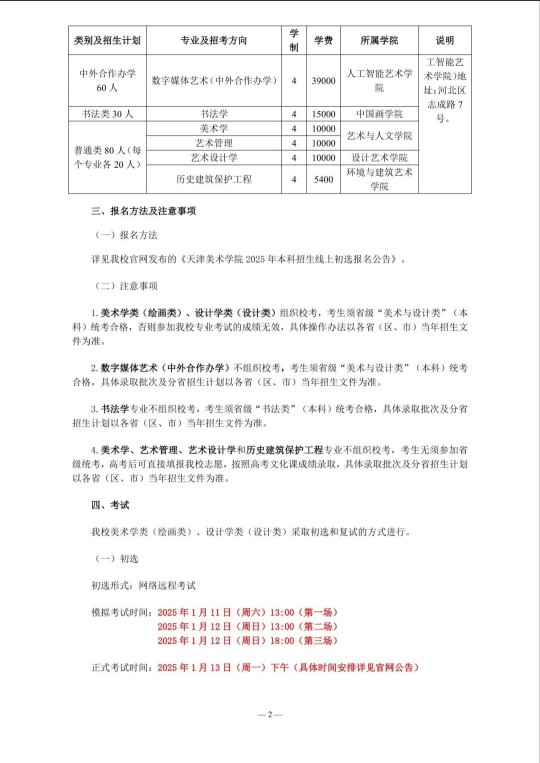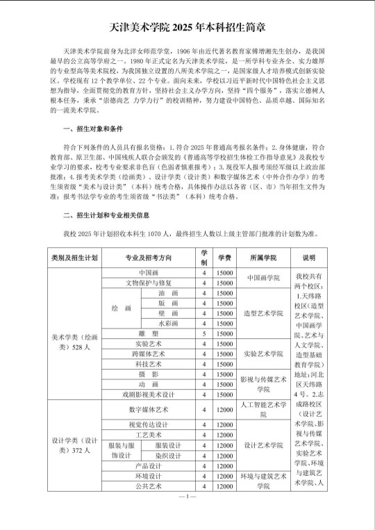 天津美術(shù)學(xué)院2025年本科招生簡章