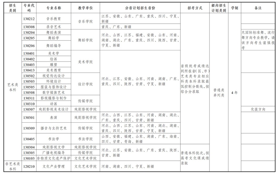 我校廣播電視編導、戲劇影視文學、非物質文化遺產保護等藝術類專業和文化產業管理專業在普通本科批次錄取。