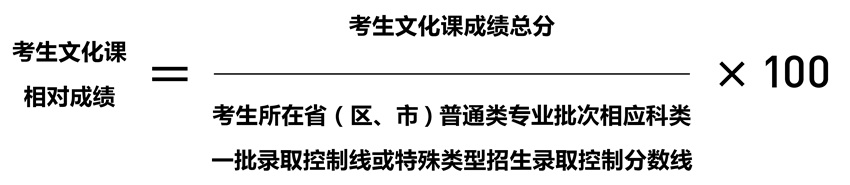 ⒊文化課相對成績計算公式(四舍五入保留至小數(shù)點后三位)