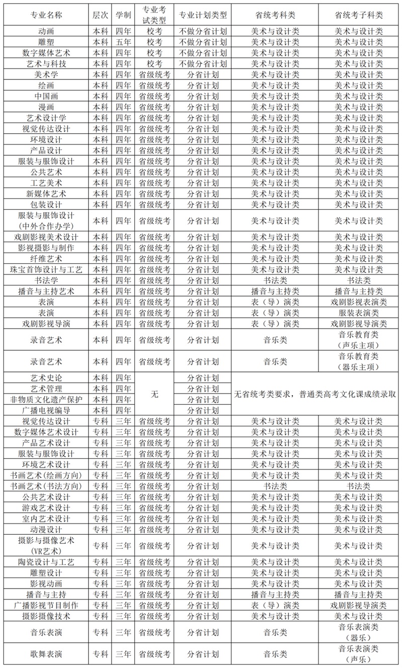 2025年雕塑、動畫、數字媒體藝術和藝術與科技四個藝術類本科專業,面向全國在省級統考合格基礎上組織校考,不編制分省招生計劃,最終招生計劃以上級主管部門批復的為準。