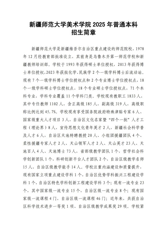 新疆師范大學(xué)美術(shù)學(xué)院2025年普通本科招生簡(jiǎn)章