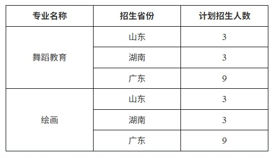 藝術(shù)類專業(yè)面向廣東、山東、湖南共3個省份招生,在生源省份規(guī)定的錄取批次,按照招生省份藝術(shù)類專業(yè)招生錄取辦法擇優(yōu)錄取。學(xué)校藝術(shù)類招生專業(yè)使用省級統(tǒng)考成績作為專業(yè)考試成績,考生須參加相應(yīng)類別(子科類)的統(tǒng)考(省統(tǒng)考各科類考試科目及考試要求詳見各省市普通高等學(xué)校藝術(shù)類專業(yè)省統(tǒng)考考試說明)。
