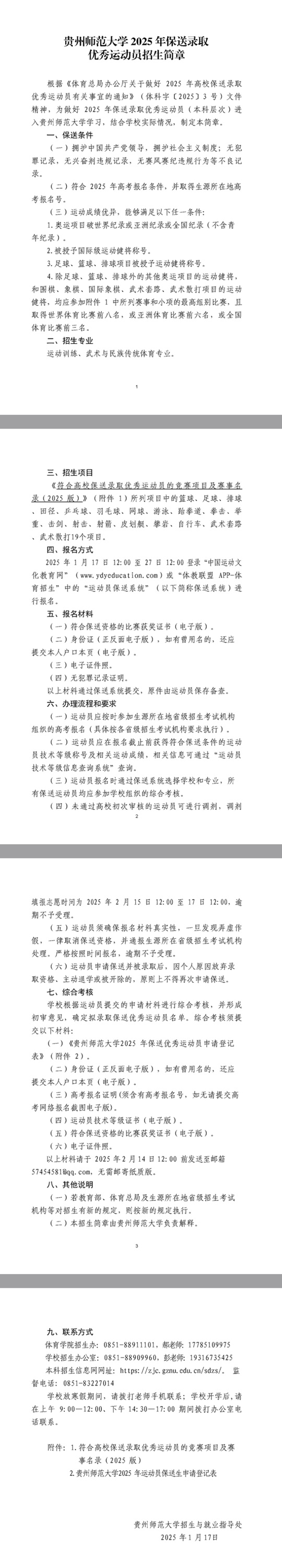 貴州師范大學2025年保送錄取優(yōu)秀運動員招生簡章