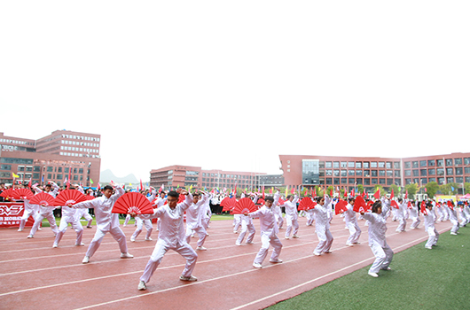 伴著《運動員進行曲》,機關(guān)黨委及各學(xué)院組成的44支代表隊邁著整齊的步伐,喊著響亮的口號,昂首闊步走過主席臺接受檢閱,明德學(xué)院代表方陣壓軸出場,用富含中國傳統(tǒng)文化的太極功夫扇表演——《中華武術(shù)魂》為貴州大學(xué)第十五屆體育節(jié)開幕添彩。