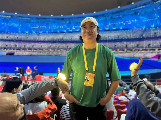 首都師范大學科德學院藝術設計學院院長彭華競作為本屆亞運會開幕式特邀的13位著名畫家之一,攜新作在亞運會開幕式現場為運動健兒加油助威。