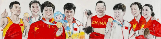 體育承載著國家強盛民族振興的夢想,大型的體育盛會也是文化交流的平臺。彭華競院長為亞運會創作的《奪金時刻》畫作在開幕式上進行循環展出,驚艷亮相。同時,畫作也在全國多個平臺進行展播,獲得了社會各界的廣泛贊譽。