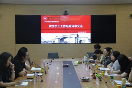 “傳承優秀工作經驗,發揮榜樣的力量”,本次培訓增設了“優秀員工經驗交流分享”環節,老帶新,傳幫帶,在新教工心中樹立榜樣意識、爭優意識。藝術設計學院彭華競院長,演藝學院岳繼平副教授應邀與新教工進行座談交流。彭華競院長從如何做一名好教師講起,提出,身為優秀青年教師要做到學生喜歡、領導賞識、同事認可,要保持一顆好的心態,做好未來發展規劃,注意身體健康。岳繼平副教授從合作:上下同欲者勝;鉆研:專心致志,深思鉆研;進。哄浂簧;堅持:不忘初心,四個方面講述如何成為好老師,如何做好教學和科研。分享交流會暢所欲言,新教工受益匪淺。