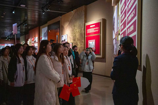 在延安革命紀念館,安塞腰鼓的激昂節奏點燃了現場氛圍。入館后,毛澤東轉戰陜北的“小白馬”、書寫《沁園春·雪》的小炕桌、鐫刻真理光芒的“實事求是”石刻三件文物,成為最生動的思政教材,配合館內群雕與歷史照片,黨中央在延安的奮斗歷程愈發清晰可感。