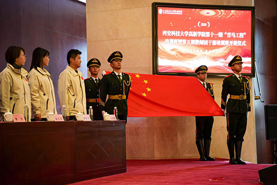 隨后,西安科技大學高新學院副院長王國良授予第十一期“青馬工程”培訓班班旗。班旗飄揚,使命在肩。這面旗幟不僅是“青馬工程”學員的團結象征,更凝聚著延安精神中自力更生、艱苦奮斗的創(chuàng)業(yè)力量。