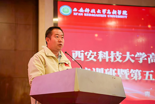 中共延安市寶塔區(qū)委黨校副校長李滔致歡迎詞,他指出,延安精神與西安科技大學高新學院的校風校訓有著深刻的內在共鳴,在這里開展“青馬工程”,是將地方紅色資源與高校思政教育有機的連接,能夠讓青年學子在歷史現(xiàn)場感悟真理力量。