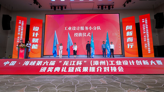 程永勝(中)上臺接過工業(yè)設(shè)計服務(wù)小分隊的旗幟