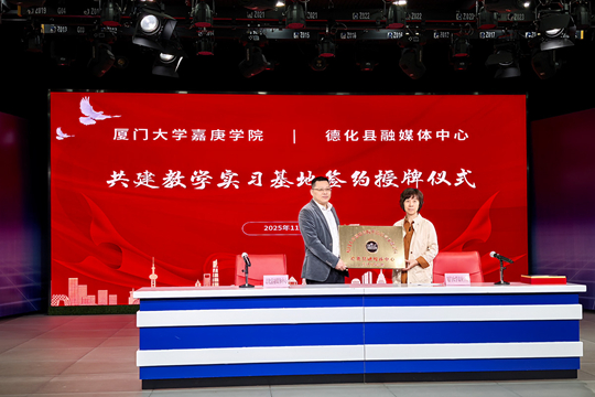 此次兩個實踐基地的建立,不僅為高校跨文化的國際傳播人才提供了實現(xiàn)創(chuàng)意的沃土,也為德化陶瓷產(chǎn)業(yè)的長遠發(fā)展夯實了人才基礎(chǔ)。值得一提的是,德化縣廣播電視臺對德化縣融媒體中心與廈門大學(xué)嘉庚學(xué)院英語語言文化學(xué)院的合作進行了報道。當(dāng)天的“德化新聞”報道指出,“(這)標(biāo)志著雙方在校媒合作、協(xié)同育人領(lǐng)域邁出實質(zhì)性一步,旨在整合資源優(yōu)勢,共同培養(yǎng)適應(yīng)新時代國際傳播需求的高素質(zhì)復(fù)合型人才。”