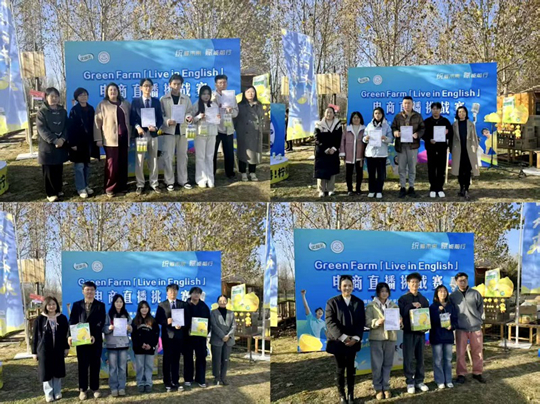 本次大賽評委團由學院師生及企業嘉賓組成,從語言表達、直播技巧、產品呈現等維度進行專業評審。經過3小時的激烈角逐,最終評選出特等獎1名、一等獎2名、二等獎3名、三等獎4名。其中,劉軒里江團隊以專業的英語表達、精湛的銷售技巧和新穎的直播內容脫穎而出,斬獲特等獎。馮嘉文、劉岳勤等老師及企業嘉賓為獲獎隊伍頒發榮譽證書。