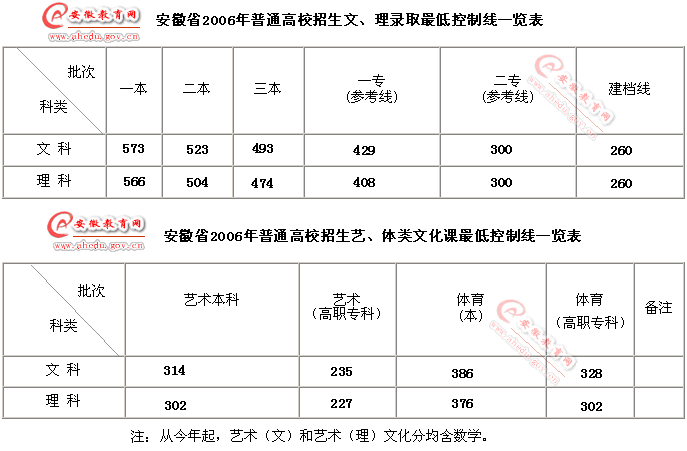 安徽省2006年普通高校招生錄取分?jǐn)?shù)線劃定