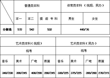 1.招生院校專業單考:計劃分省的最低錄取控制分數線,統招為文化340分,專業成績合格;民辦為文化330分,專業成績合格。計劃不分省的最低錄取控制分數線為文化270分,專業成績合格。