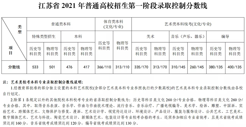| 江蘇省公布普通高校招生第一階段省錄取控制分數線 |