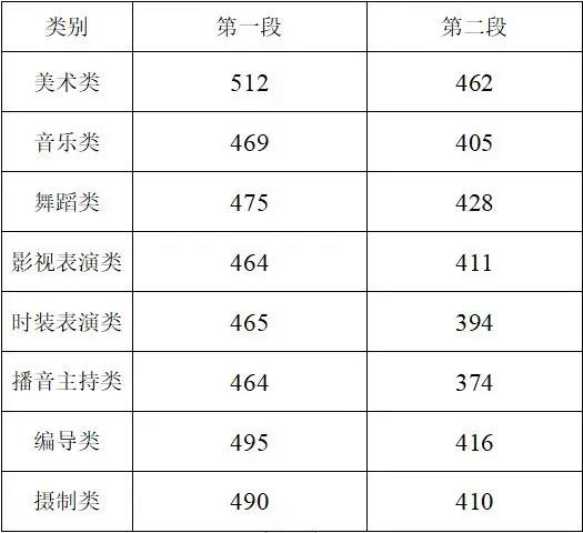 藝術類第二批專業(yè)省統(tǒng)考各類別綜合分分段線