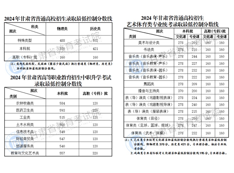 2024年甘肅省普通高校招生錄取最低控制分數(shù)線