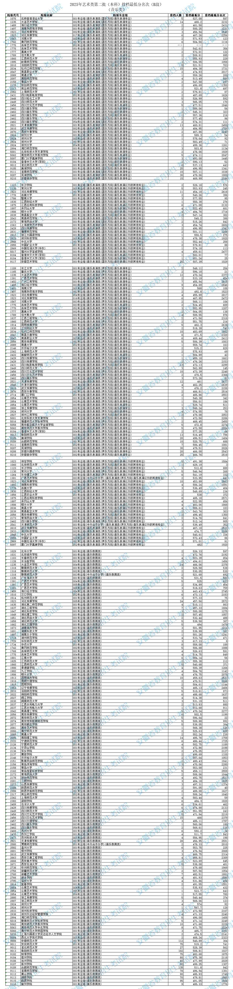 安徽:2025年藝術類第二批(本科)投檔最低分名次(音樂類)
