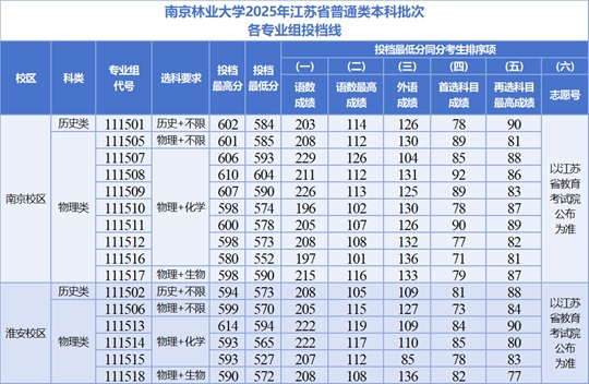 | 南京林業大學2025年江蘇省普通類本科批次投檔線 |