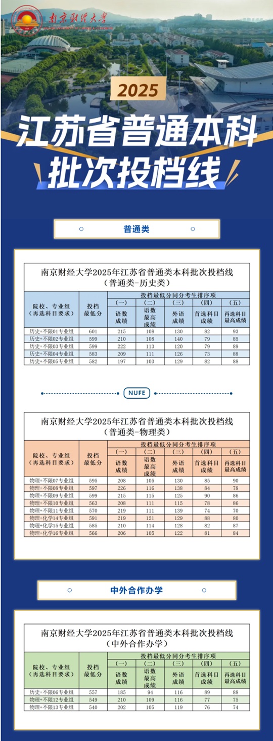 | 南京財經大學2025年江蘇省普通本科批次投檔線 |