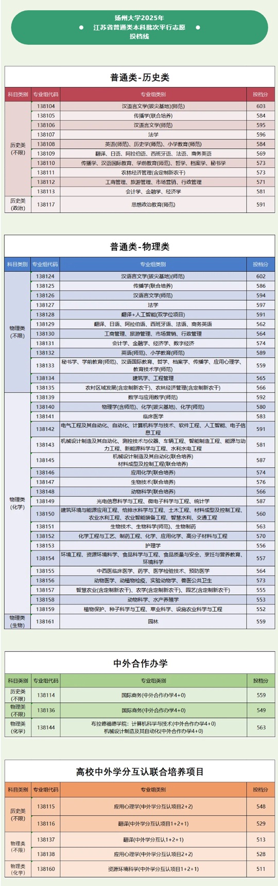 | 揚(yáng)州大學(xué)2025年江蘇省普通類本科批次平行志愿投檔線 |