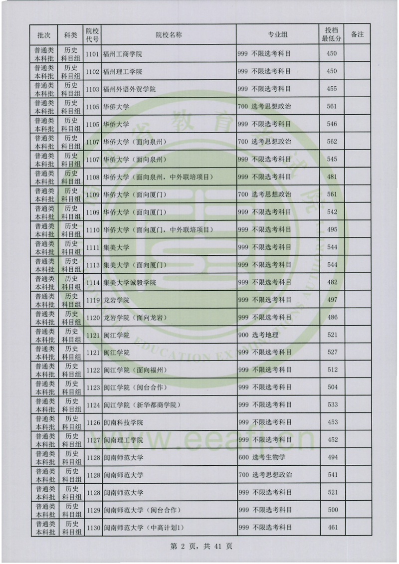 福建:2025年普通類本科批常規(guī)志愿院校專業(yè)組投檔最低分公布(歷史科目組)
