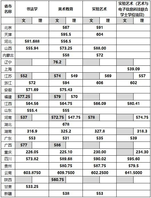 一、藝術(shù)類本科批(省統(tǒng)考類)各專業(yè)錄取分數(shù)線