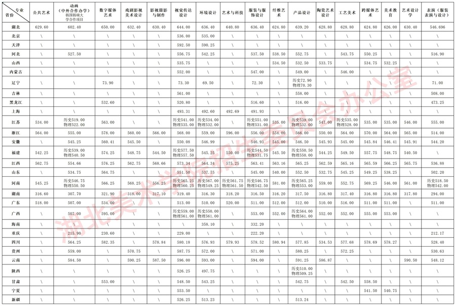 | 湖北美術學院2025年本科招生統考類、普通類各專業錄取分數線公告 |