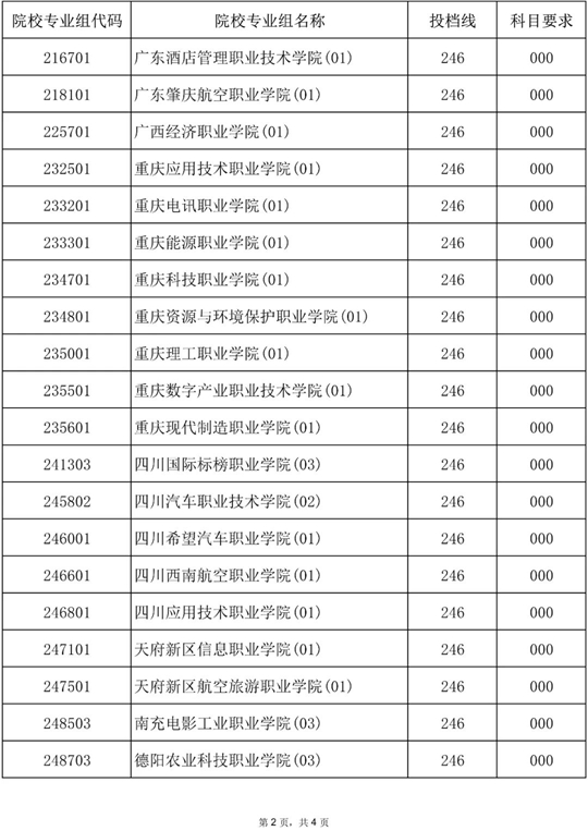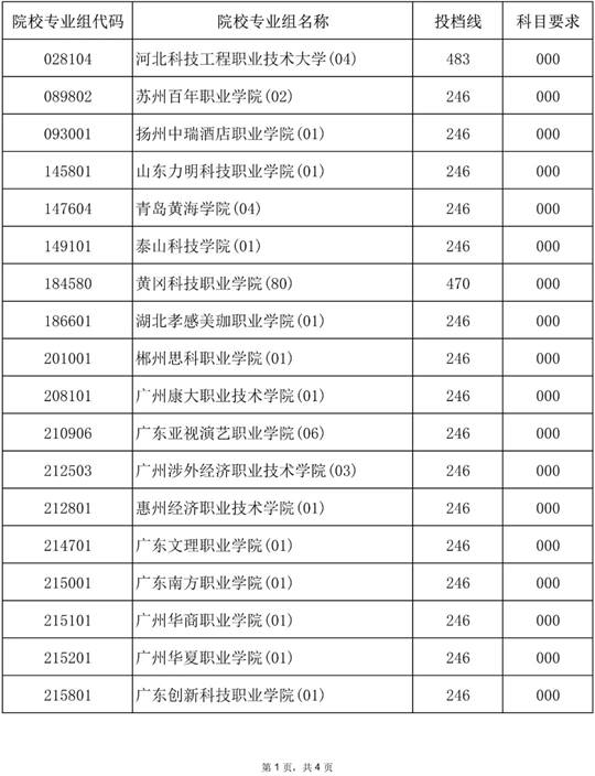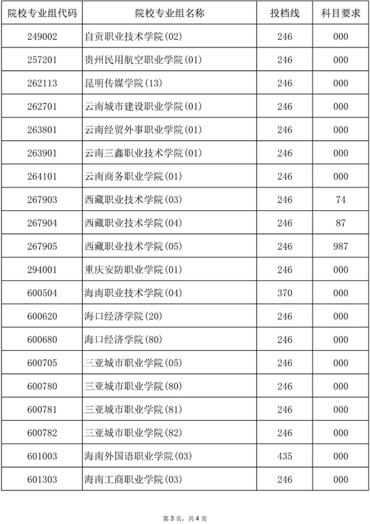 2025年海南省普通高校招生錄取高職(專科)批院校專業組第二次征集志愿平行投檔分數線