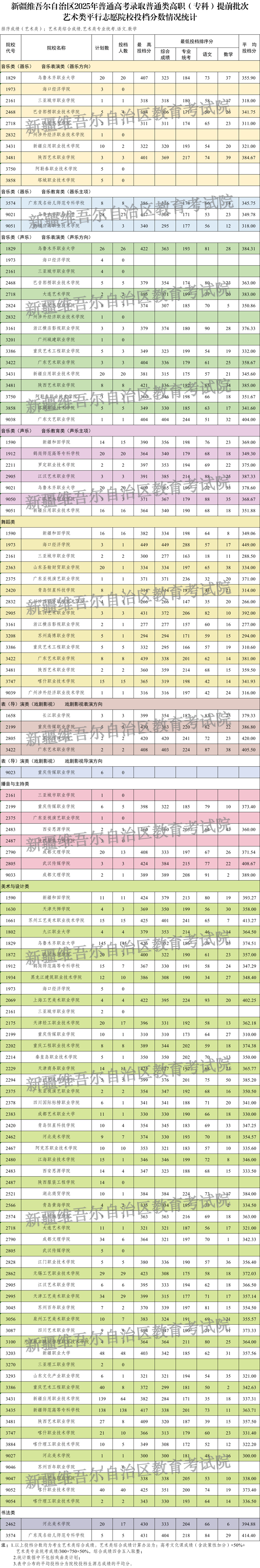 | 新疆維吾爾自治區2025年普通高校招生普通類高職(專科)提前批次藝術類投檔情況 |