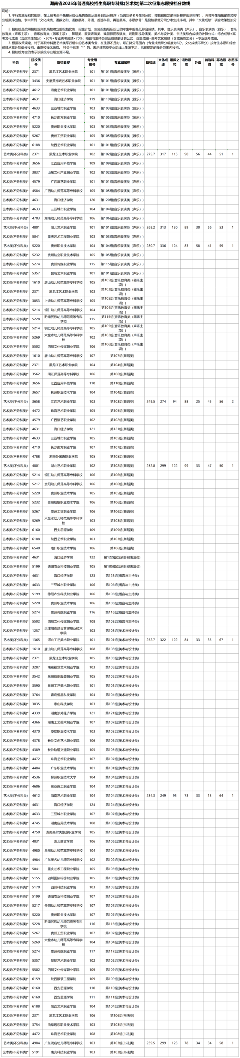 | 湖南省2025年普通高校招生高職專科批(藝術(shù)類)第二次征集志愿投檔分?jǐn)?shù)線 |