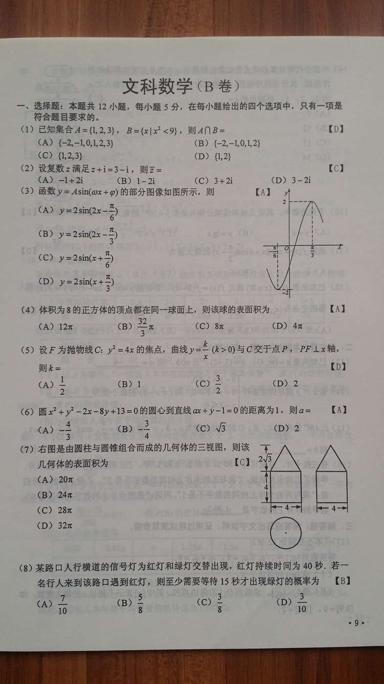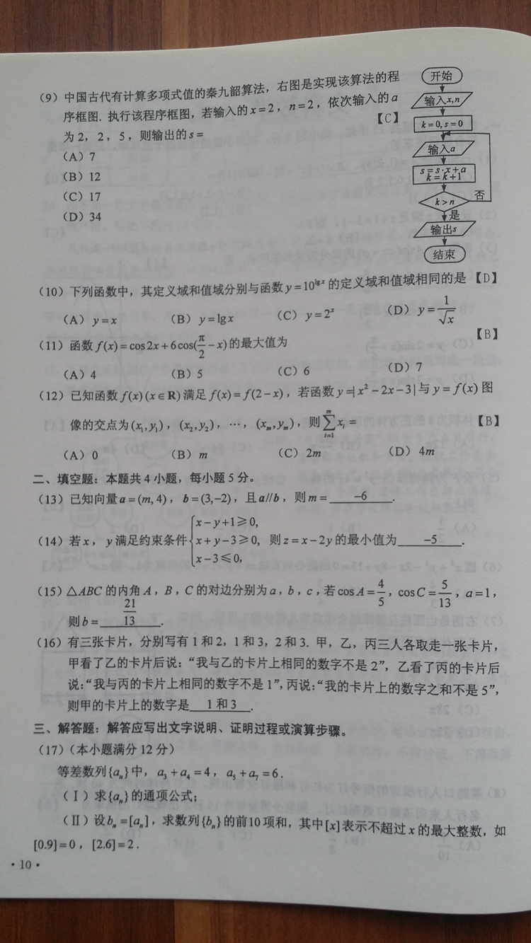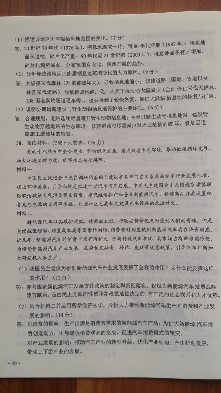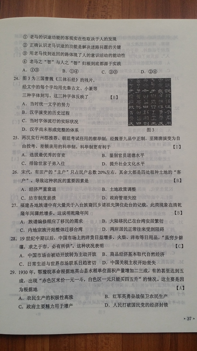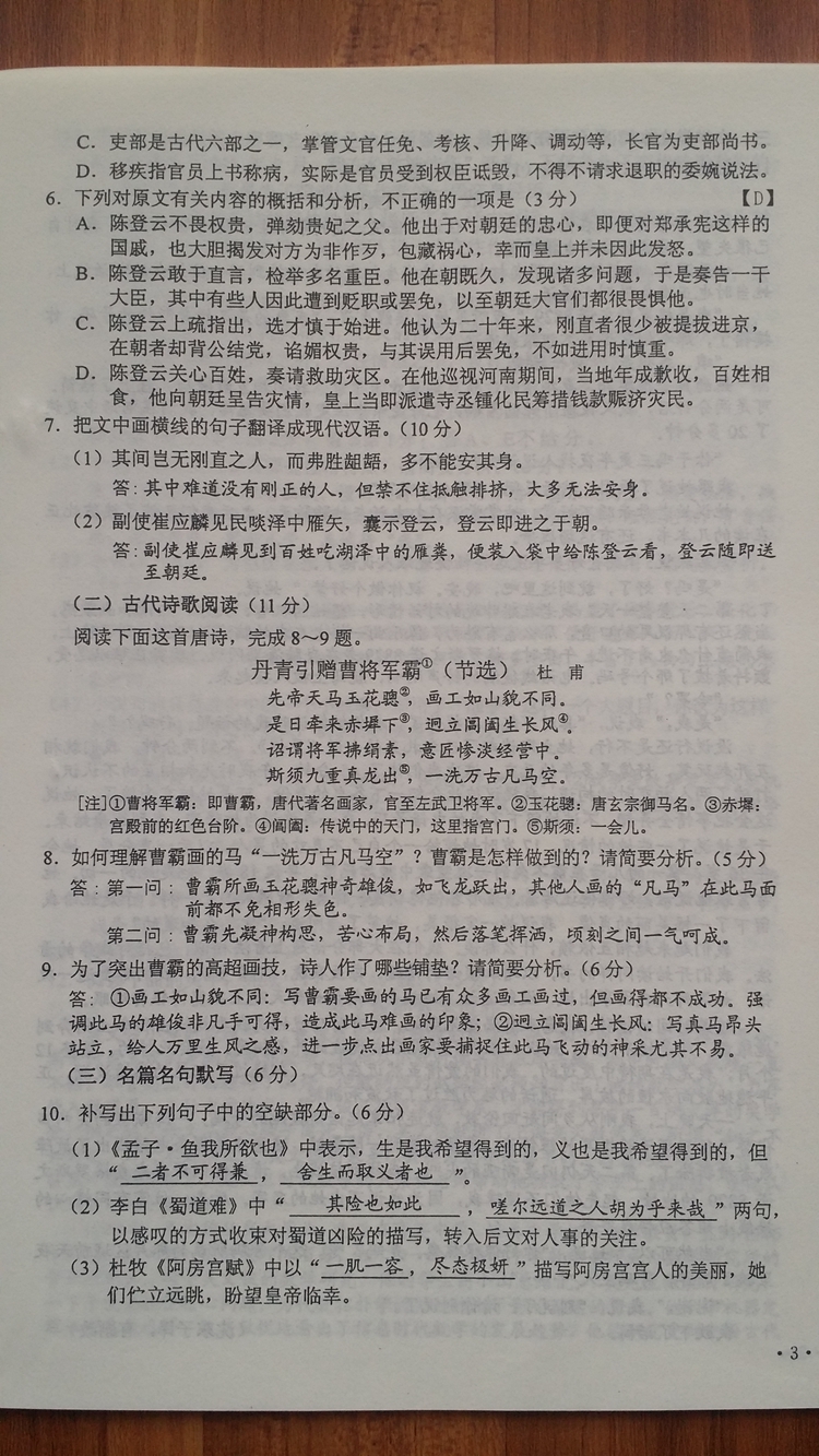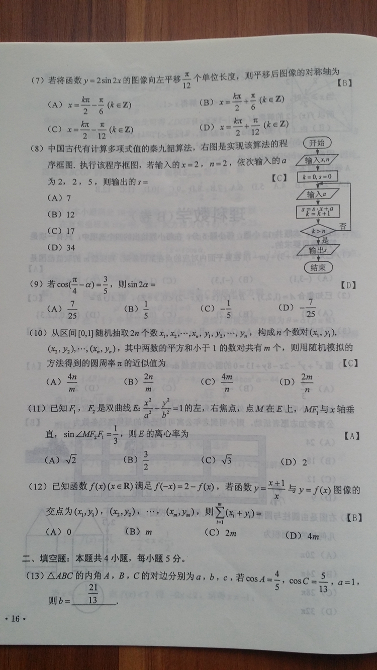 陜西:2016年普通高等學校招生考試試題及參考答案