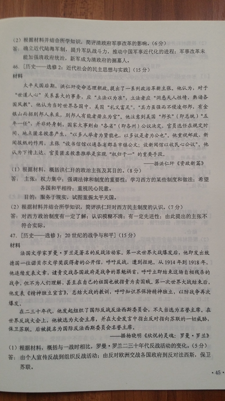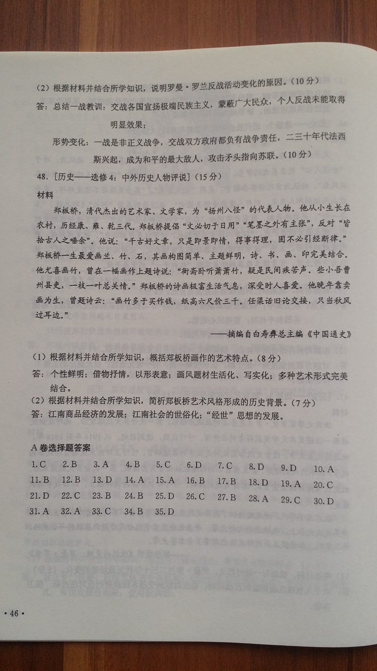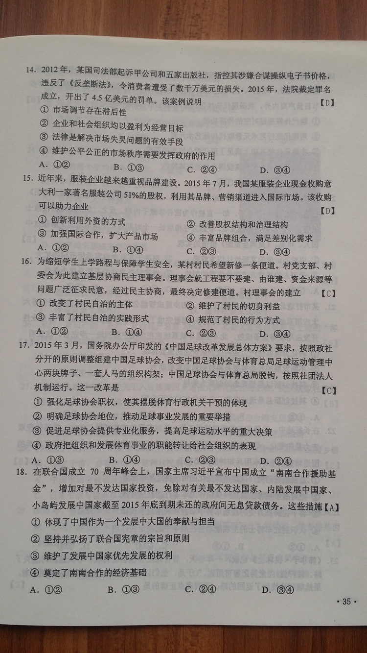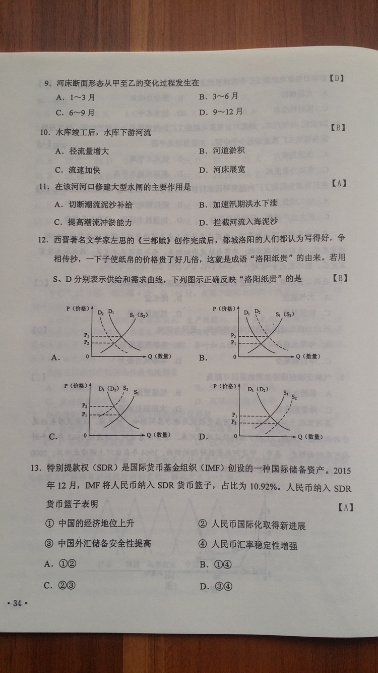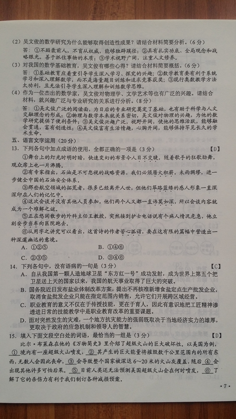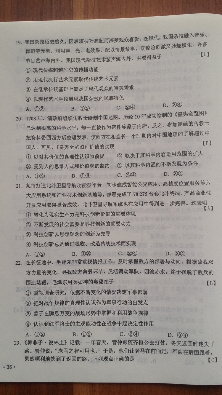 陜西:2016年普通高等學校招生考試試題及參考答案