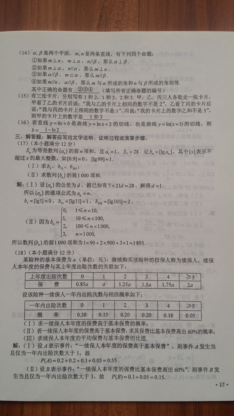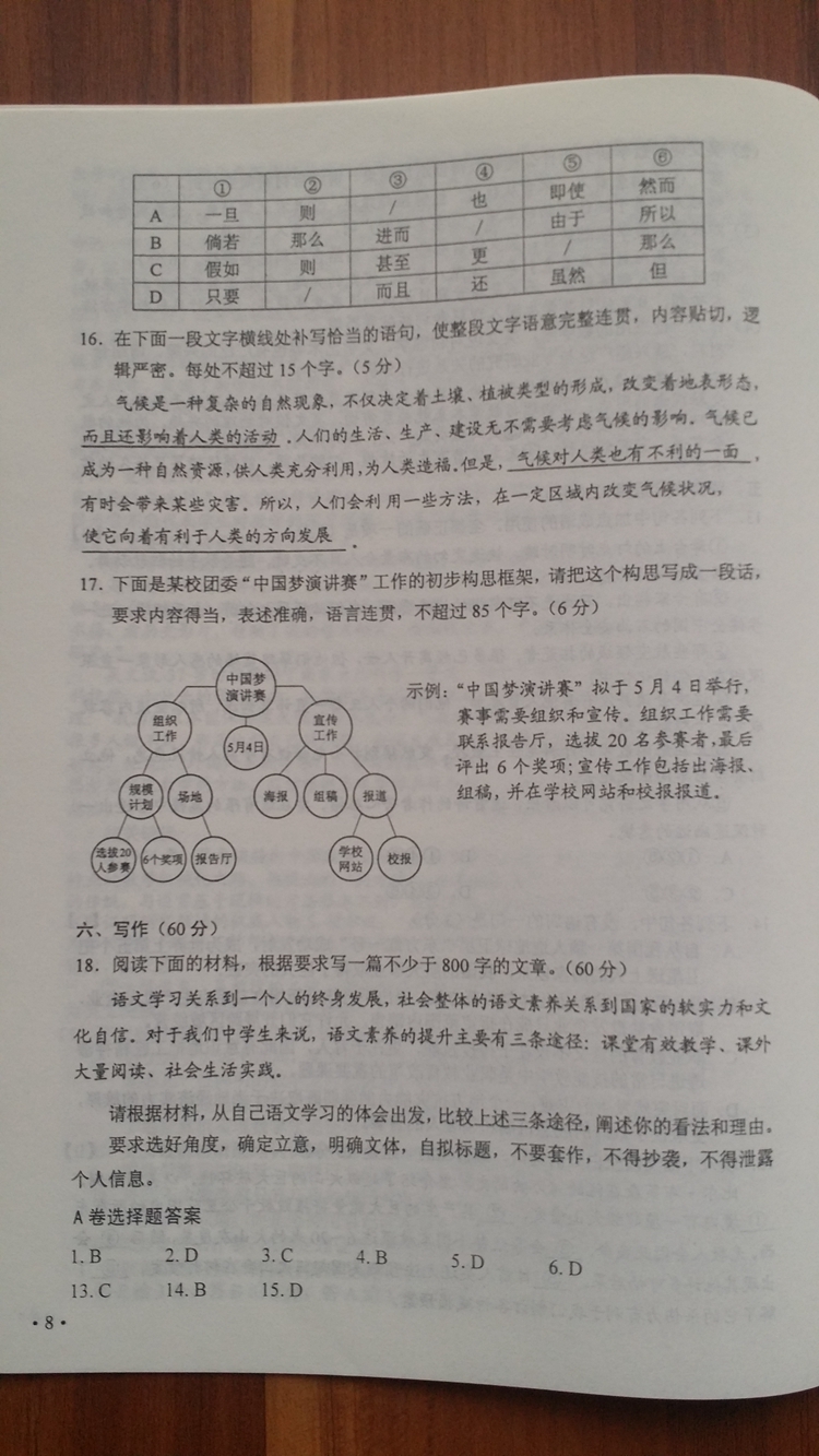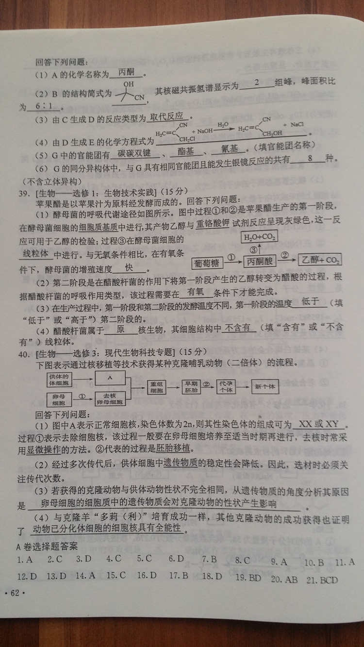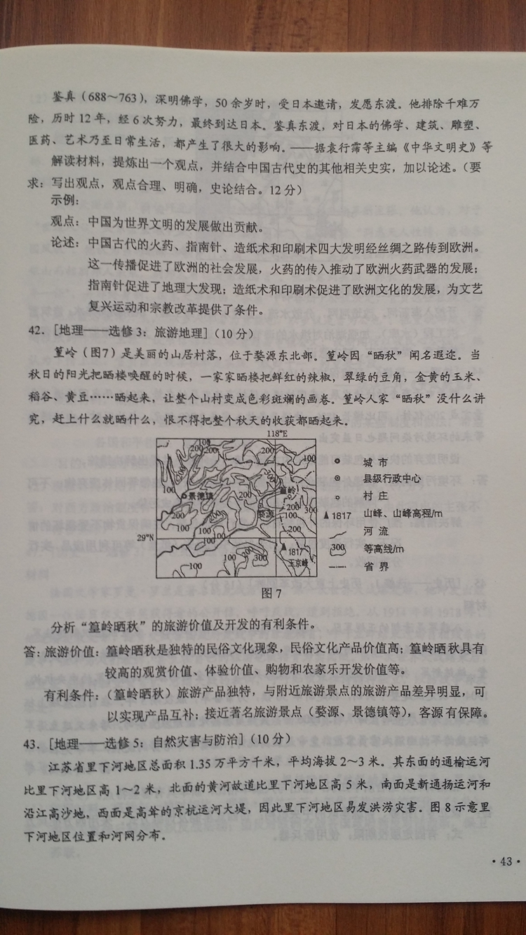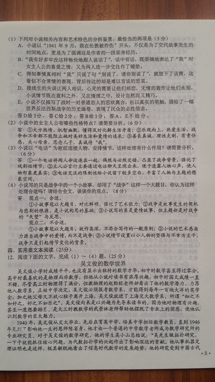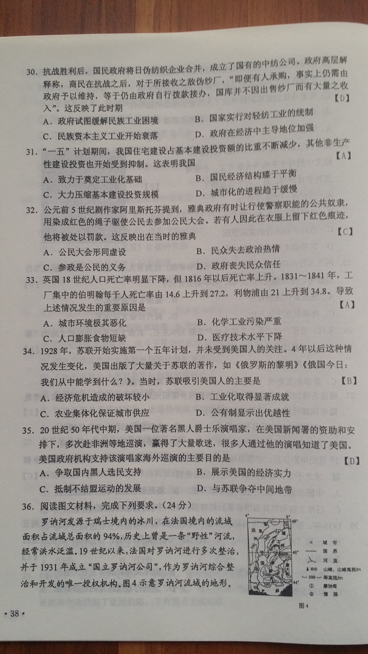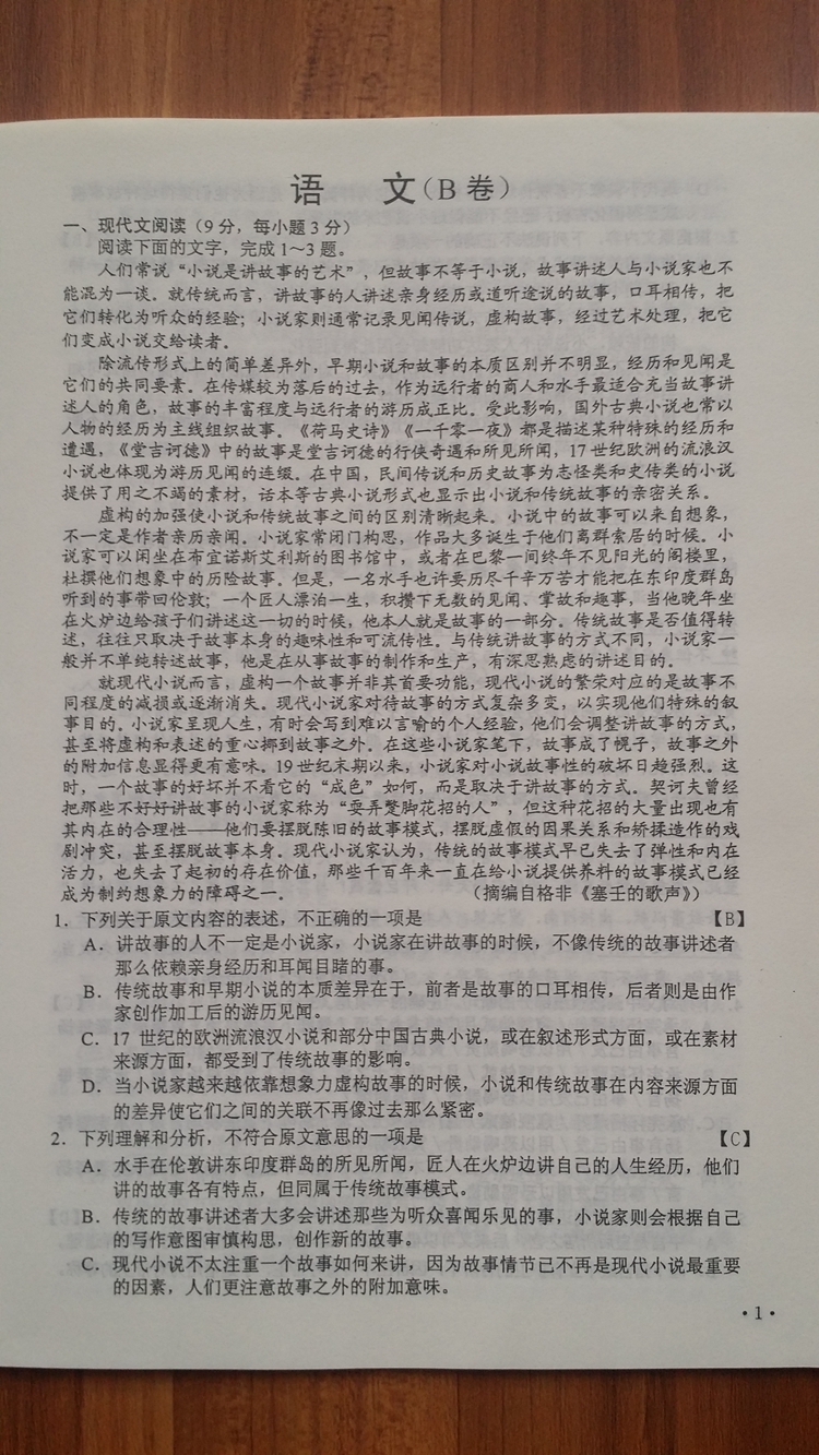 陜西:2016年普通高等學校招生考試試題及參考答案