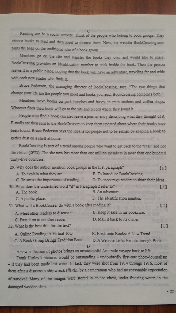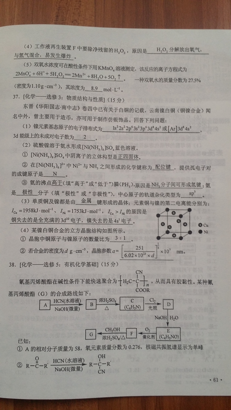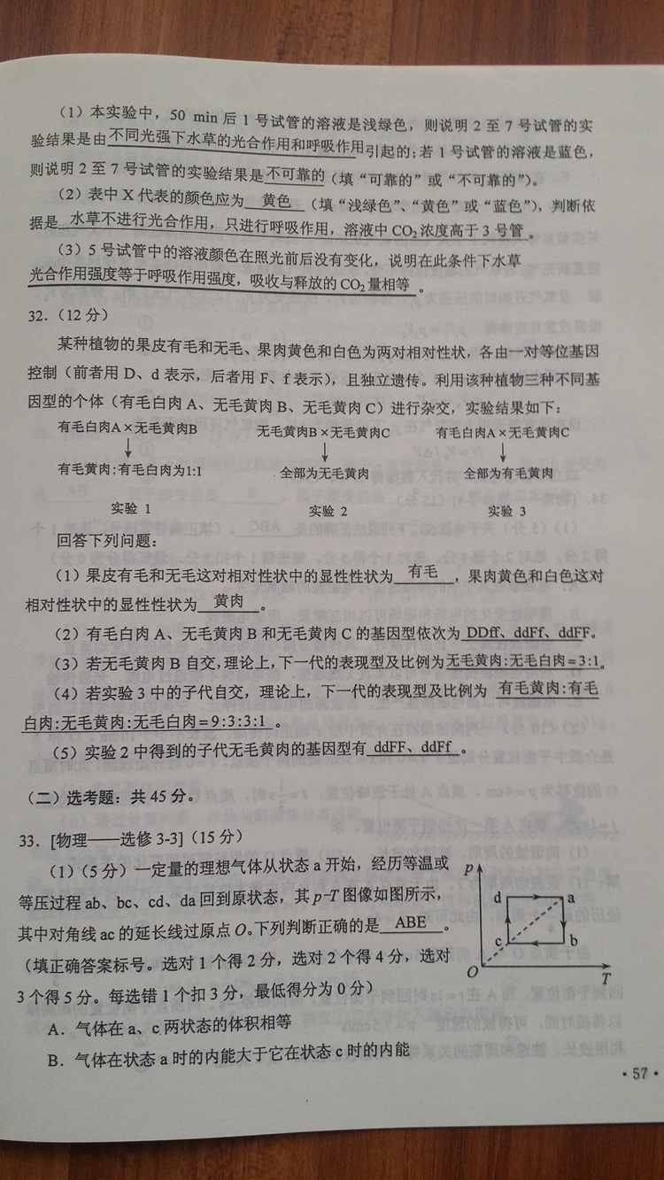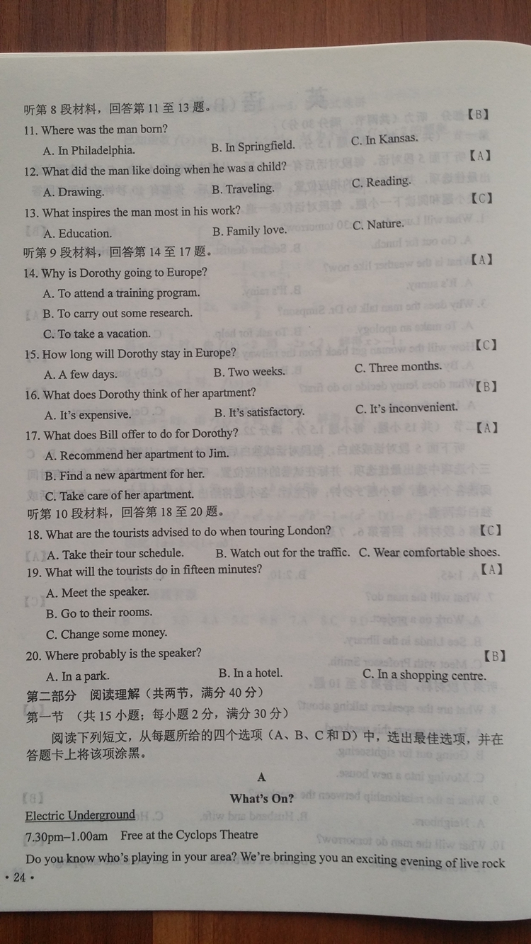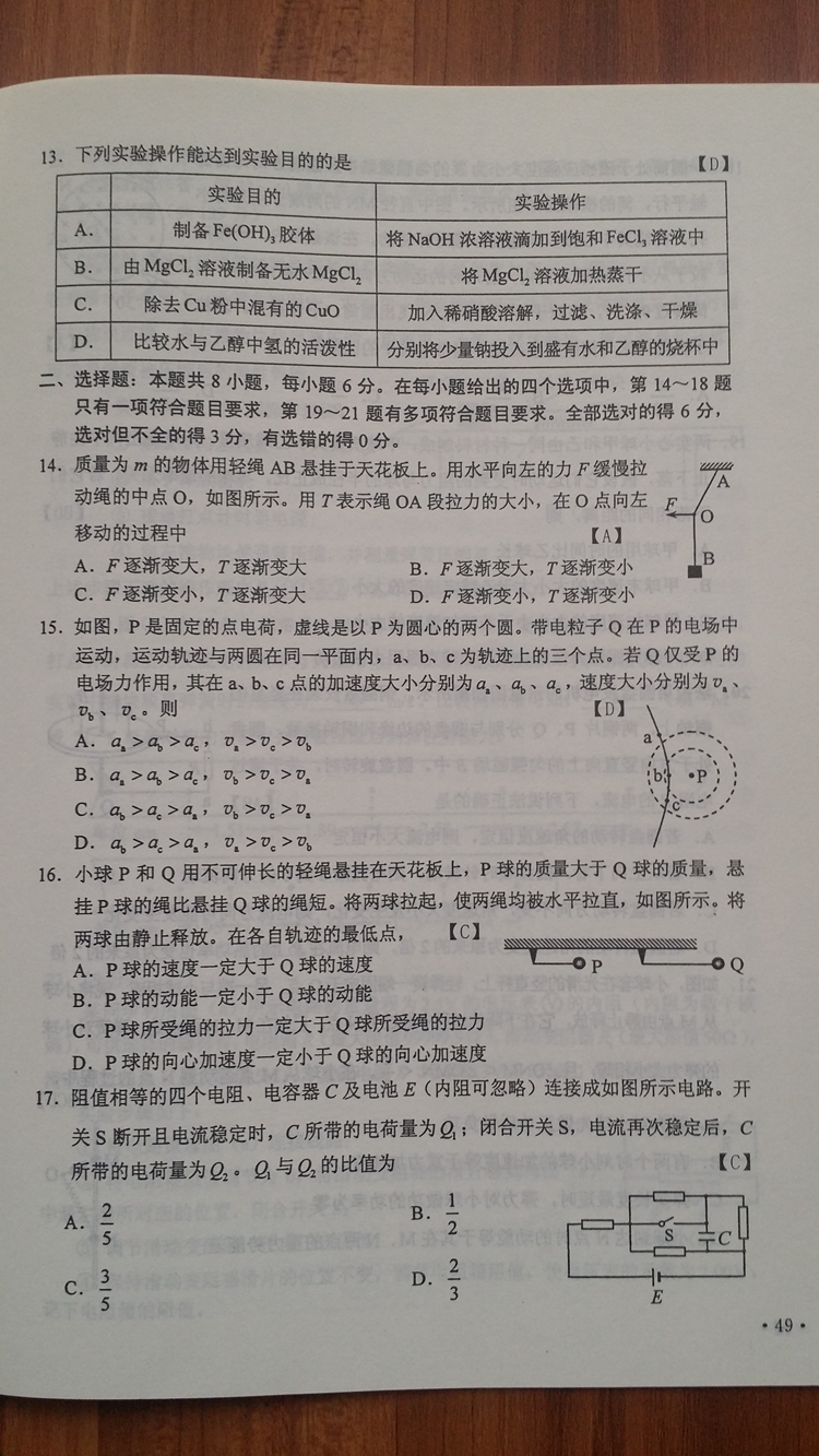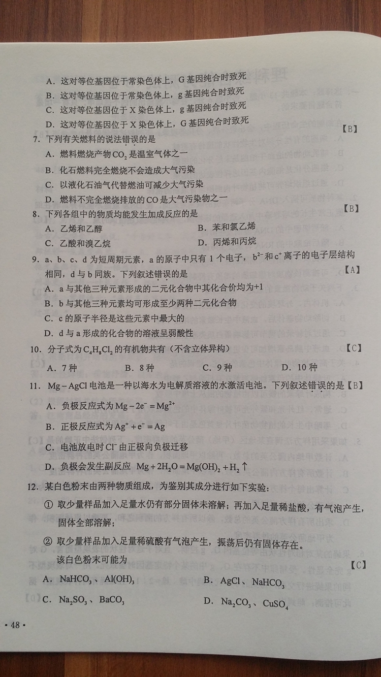 陜西:2016年普通高等學校招生考試試題及參考答案