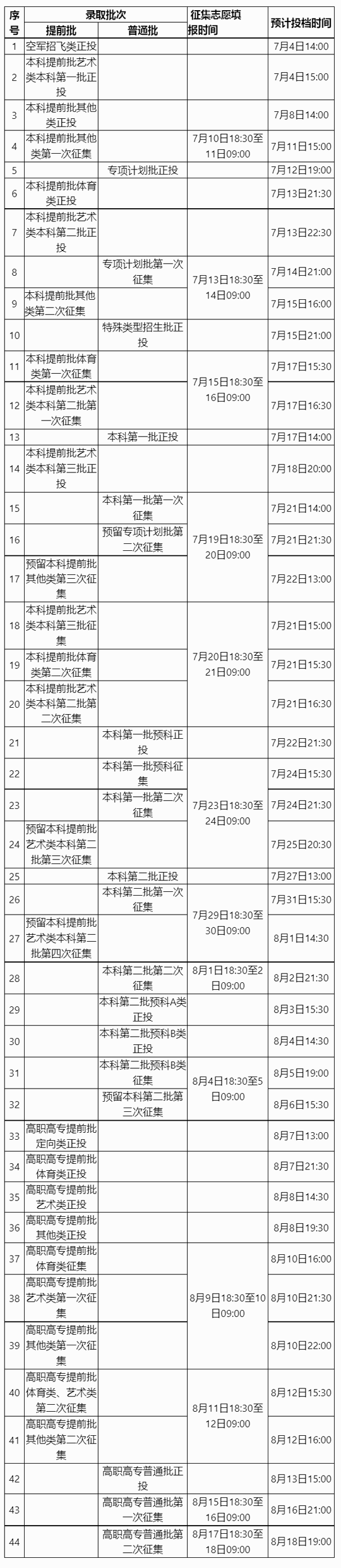 廣西2023年普通高校招生錄取日程表