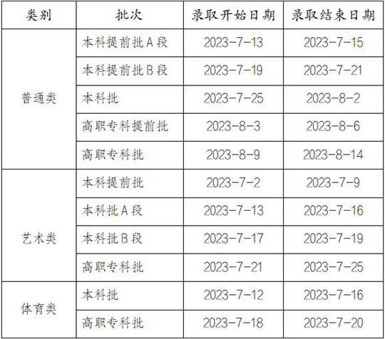 我市2023年普通高校招生錄取工作即將全面正式開(kāi)始,將于8月14日結(jié)束,各類別各批次錄取進(jìn)程安排如下。