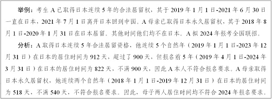 ①取得住在國長期或永久居留權,連續兩個自然年(即某年1月1日到次年12月31日)和報名前2年內(即2022年4月1日-2024年3月31日)在住在國實際累計居留均不少于540天。