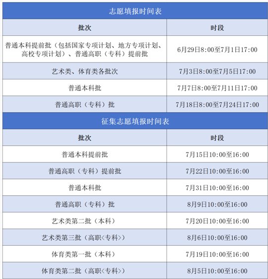 一、志愿網上填報時間安排