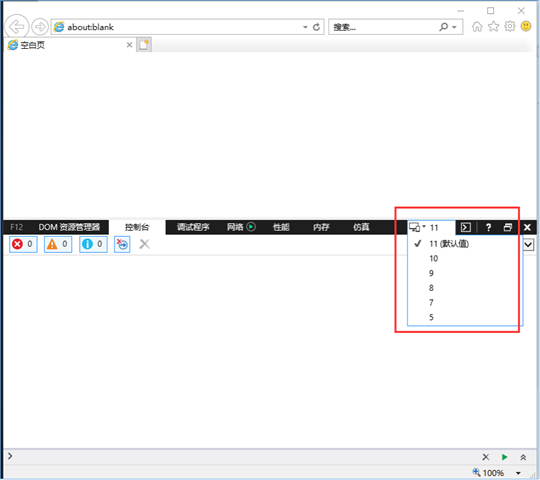 在瀏覽器界面按F12鍵,彈出如下界面,選中的版本號必須與瀏覽器實際版本一致。