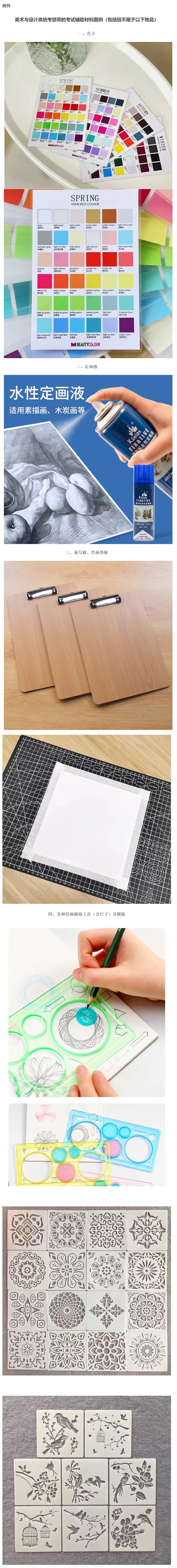 美術(shù)與設(shè)計(jì)類(lèi)考生不得攜帶色卡、定畫(huà)液、速寫(xiě)板(速寫(xiě)墊)、各種繪畫(huà)輔助工具(含尺子)及模板等可能影響考試公平的考試輔助材料。(相關(guān)圖例見(jiàn)附件)