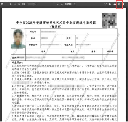 | 貴州省2026年普通高等學校招生藝術類專業省級統考準考證打印操作步驟 |