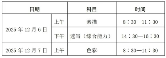 浙江省2026年高考美術(shù)與設(shè)計(jì)類省統(tǒng)考將于2025年12月6日—7日舉行。考生須帶齊必要證件,做好赴考準(zhǔn)備。一起來看考前提醒。
