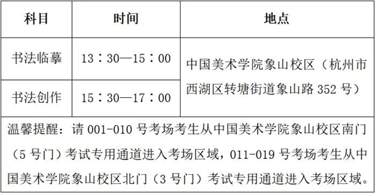書法類省統(tǒng)考包括書法臨摹、書法創(chuàng)作兩個科目,均在2025年12月8日下午開考,具體考試時間和地點(diǎn)如下: