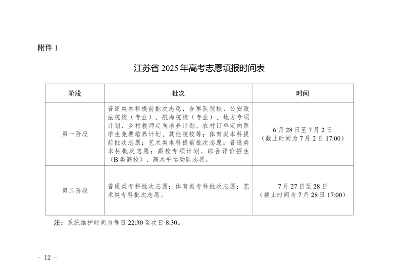 江蘇省2025年高考志愿填報時間表